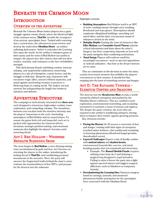 Beneath the Crimson Moon - A DND 5e Mini Campaign for Players and Dungeon Masters