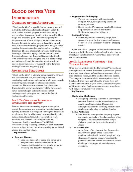 Blood on the Vine - A DND 5e Mini Campaign for Players and Dungeon Masters