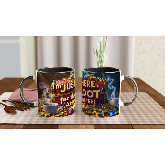 I’m Just Here for the Loot (and Coffee) D&D Inspired Ceramic Mug – 11oz Treasure Chest Design
